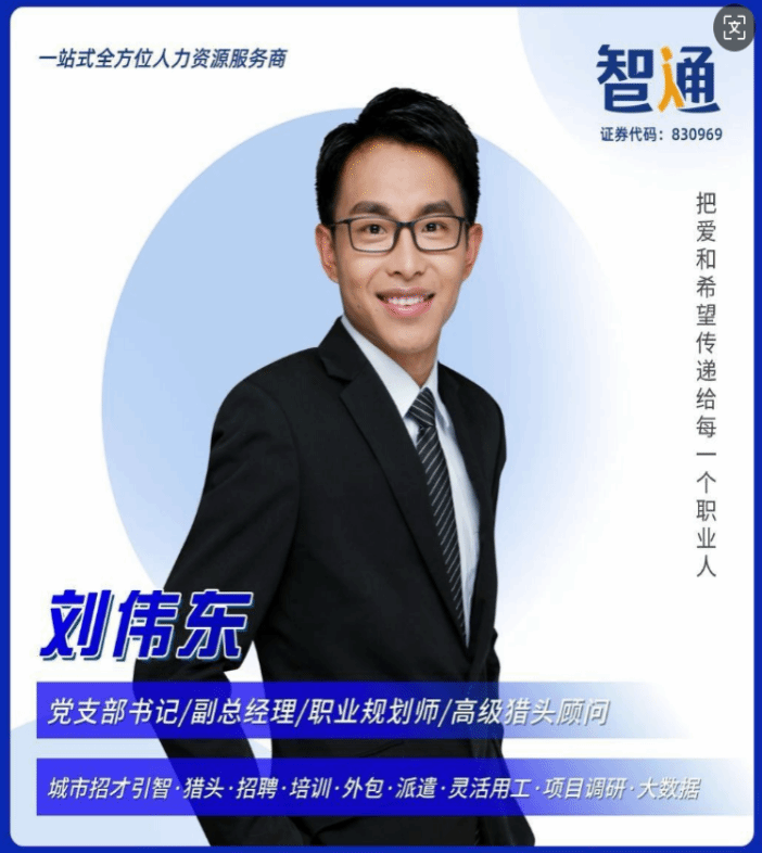 刘伟东,14届工商管理专业,优秀毕业生,学院第四届 ERP协会会长,毕业后一直在智通人才连锁集团江门分公司工作,现任公司股东,江门公司党支部书记,副总经理,职业指导师、心理咨询师和高级猎头顾问。