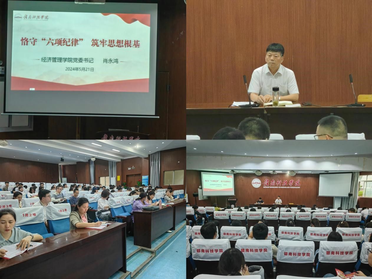本网讯:为深入开展党纪学习教育,认真领会《中国共产党纪律处分条例》(以下简称《条例》),5月21日下午,学院党委书记肖永鸿在新民楼报告厅作题为《恪守“六项纪律”,筑牢思想根基》的党纪学习教育专题党课报告。学院党委全体师生党员参加。