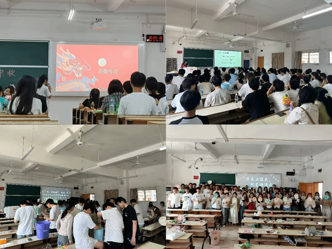 新生班级在主教学楼开展文艺活动,各班辅导员、班主任、班助及在校学生参与活动。活动设置了丰富多彩互动环节,制漆扇、成语接龙、击鼓传花、师生合唱等等。同学们踊跃上台展示才艺,现场一片欢声笑语。随后,师生一同进行文艺表演,参与了趣味互动游戏,共同度过了一个温馨难忘的中秋节。