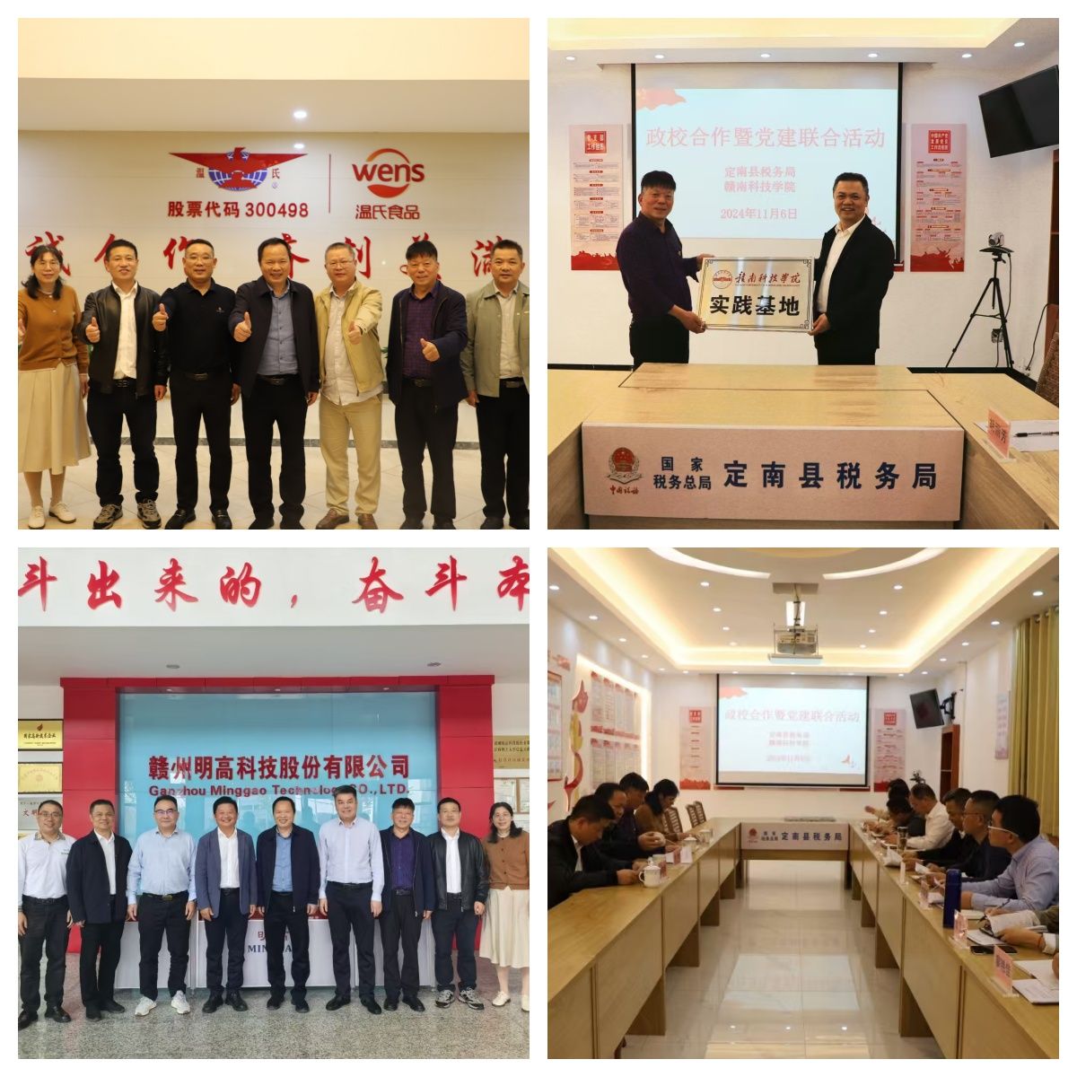 期间,陈文新一行赴国家税务总局定南县税务局洽谈政校合作事宜。杨军伟局长热情接待了陈文新一行,并介绍了定南县税务局的党建引领、业务办理等相关情况,分析了我校相关专业的发展前景,对相关专业建设提出了中肯建议,同时表示将加大对我校相关专业建设的支持力度,促进学校专业快速发展。为充分发挥我校在教学资源、人才等方面的优势以及定南县税务局在税务业务领域优势,共同培养国家大量需求的复合型人才,服务于社会,双方签订了实习基地合作协议。