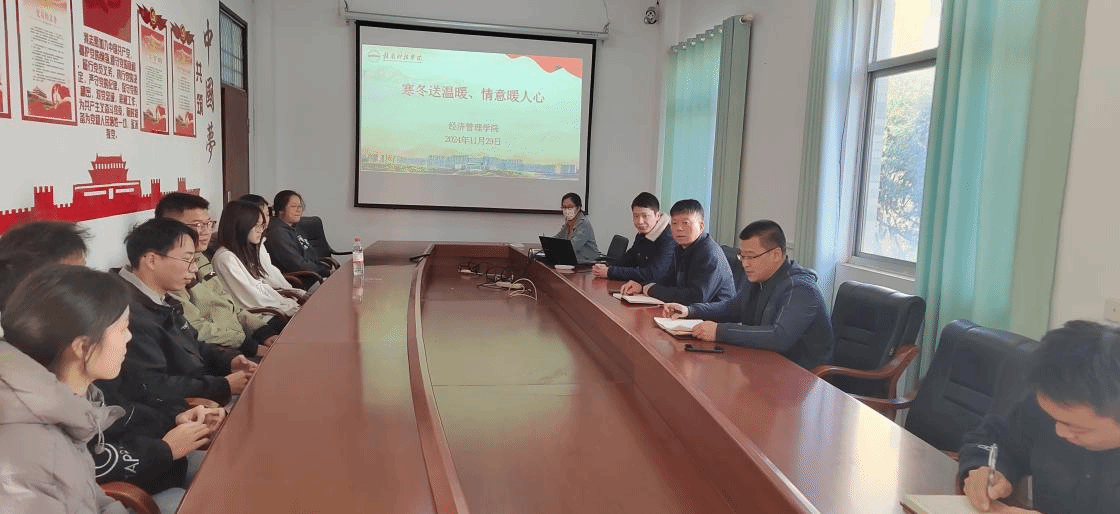本网讯:随着冬季的脚步日益临近,气温逐渐走低,为了确保家庭经济困难学生在寒冷的冬季能够得到足够的关怀与温暖,11月29日,学院在2教309会议室开展寒冬送温暖行动,学院党委书记肖永鸿,学院党委委员梁文学以及全体辅导员出席本次活动。