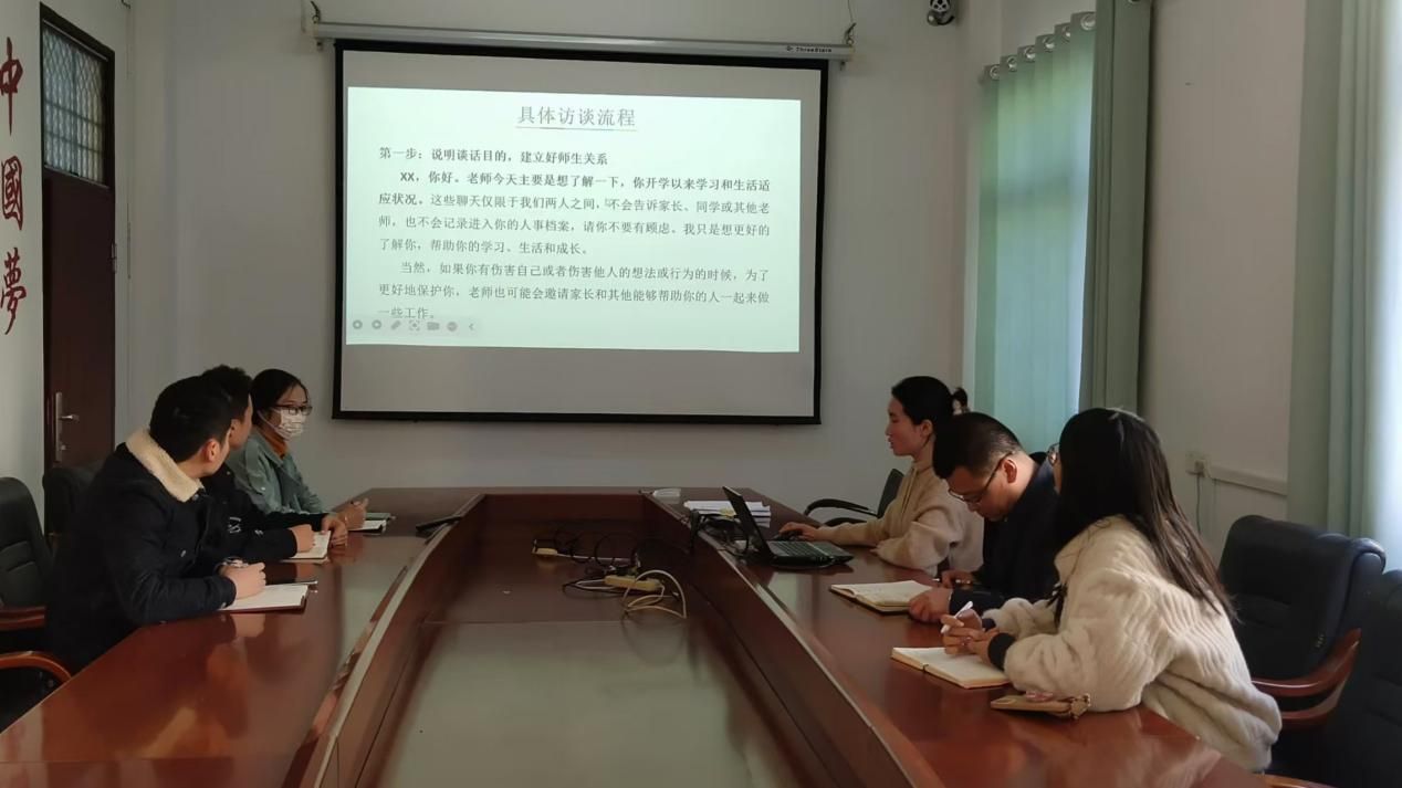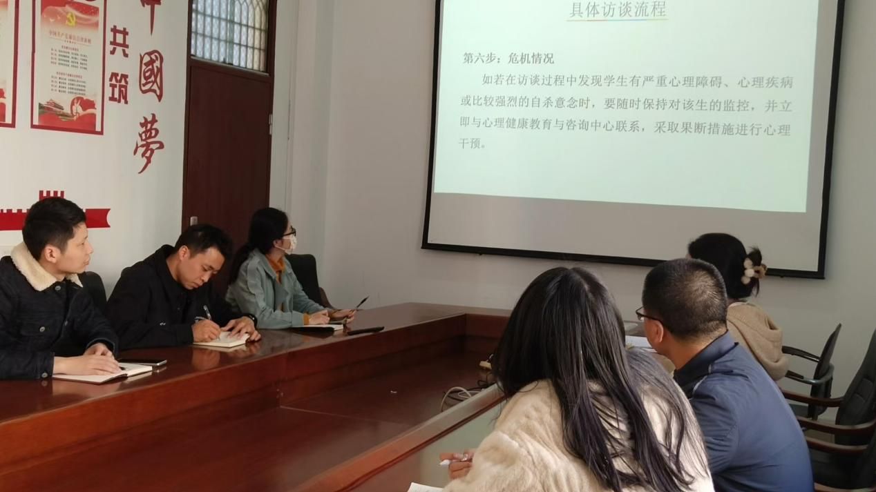 本网讯:为进一步加强我校学生心理健康教育工作,提升辅导员在学生心理问题识别与干预方面的专业能力,11月29日,我院于 2教309成功举办了辅导员心理访谈培训,学院党委委员梁文学老师以及全体辅导员出席本次活动。此次培训旨在通过系统学习与实践演练,使辅导员们能够更好地走进学生内心世界,为学生的心理健康保驾护航。