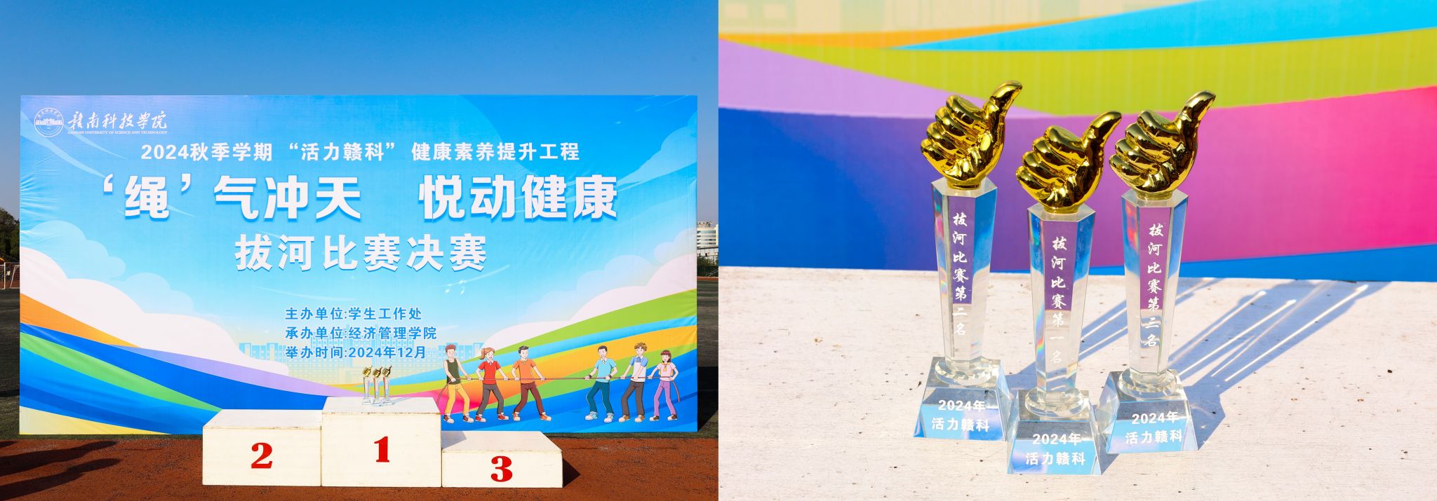 本网讯:12月3日下午,我校在田径场举办“活力赣科”健康素养提升工程拔河比赛。本次比赛由学生工作处主办,永利yl23411集团承办,共计100余名同学参与比赛。