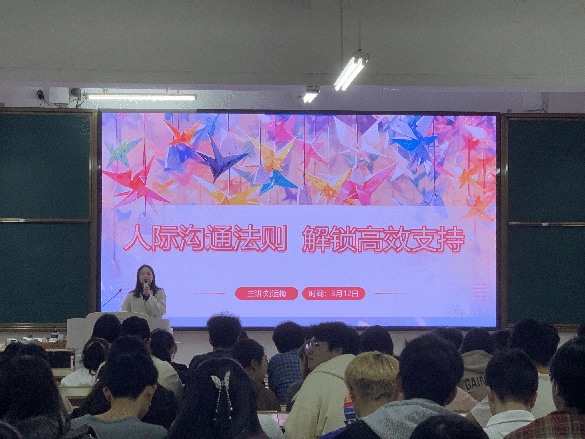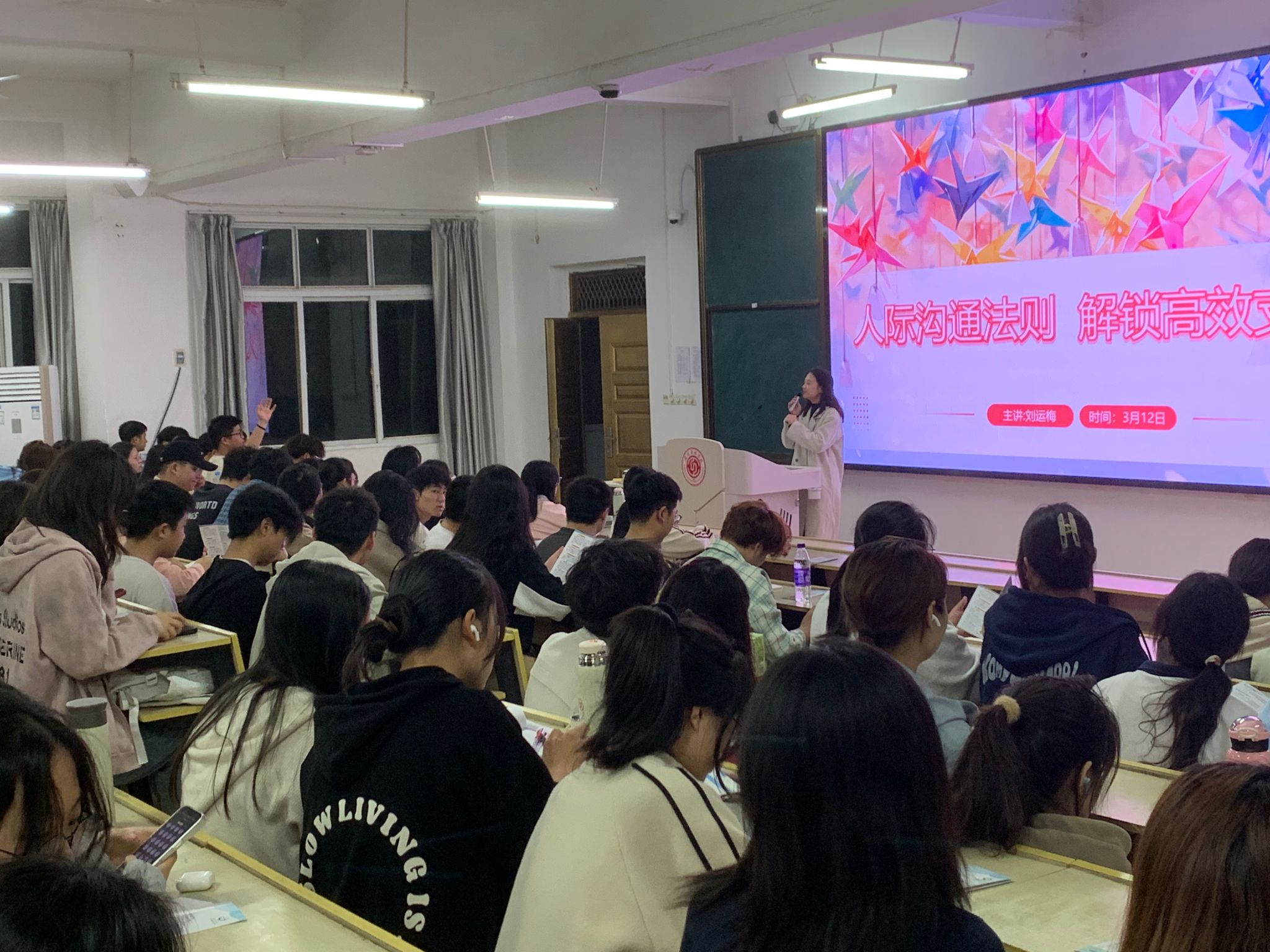 本网讯:3月12日晚上,永利yl23411集团在主教Z1D1开展以 “人际沟通法则,解锁高校支持” 为主题的心理健康讲座,本次讲座由心理健康教育与咨询中心刘运梅老师主讲。永利yl23411集团全体辅导员、各班心理委员、心理联络员等200余名学生参加讲座。