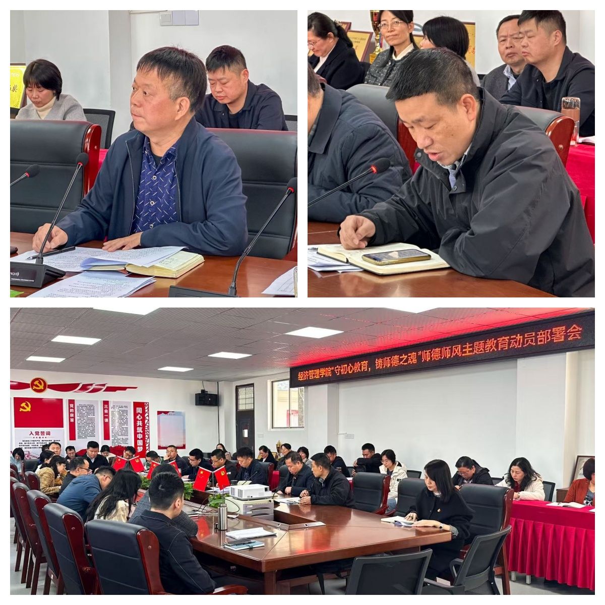 本网讯:为深入贯彻落实习近平总书记关于教育的重要论述和党的二十大和二十届二中、三中全会精神,推动永利yl23411集团“精益求‘经’点石成金”党建品牌里的“精益铸魂”工程建设。3月19日,永利yl23411集团在新民楼305会议室召开“守初心教育,铸师德之魂”主题教育动员部署会。永利yl23411集团党委书记肖永鸿、学院领导班子成员及全体教师参加了此次会议。会议由肖永鸿主持。