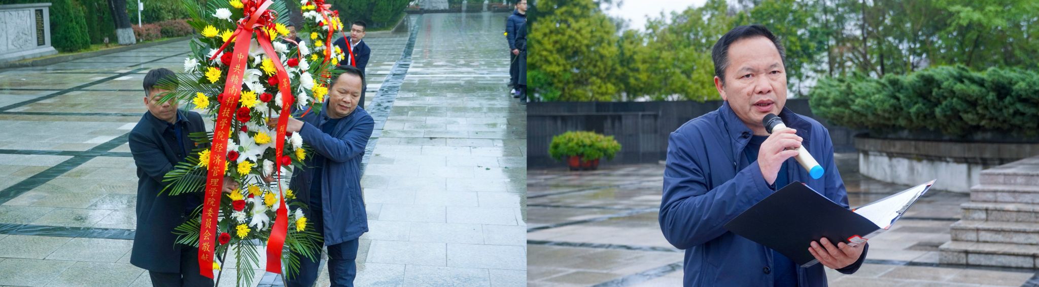 祭奠仪式在雄壮的《献花曲》中开始,全体人员肃立默哀、行三鞠躬礼。学生党员代表晏彪结合新时代青年责任作表态发言,表示作为新时代青年的我们既要传承“艰苦奋斗”的优良作风,更要发扬“守正创新”的时代精神。教师代表黄金岭以“赓续红色基因,勇担经管使命”为题,阐释了将先烈精神转化为育人动力的实践路径,并明确了新时代赣科经管人的两大使命:一是铭记历史,传承精神;二是立足当下,勇担责任。