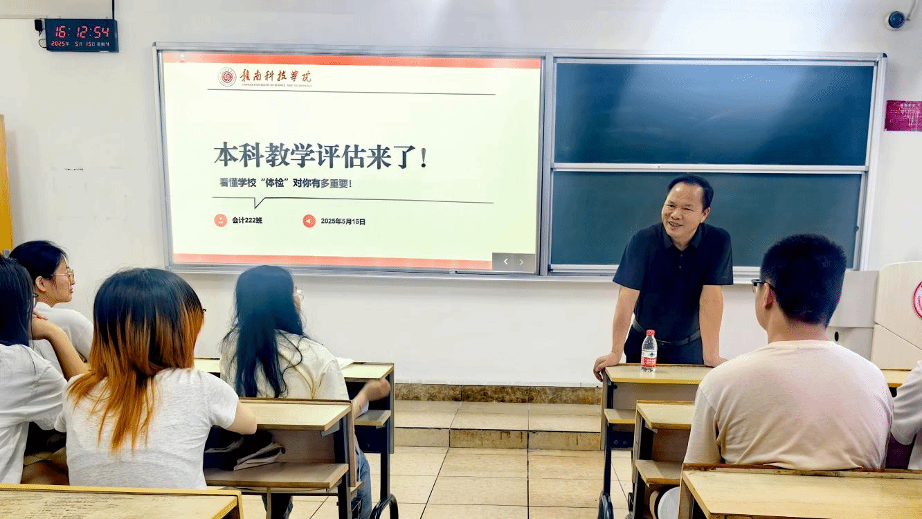 陈文新围绕“迎接本科教学评估”这一主题,他对同学们提出了三点殷切期望:一是要高度重视教学评估工作,秉持实事求是的态度,为赣科的发展贡献自己的一份力量。二是要严守校规校纪,在学习和日常生活中以更高的标准严格要求自己,养成良好学习和行为习惯,为营造优良的校园风气添砖加瓦。三是要关心关爱身边同学,在日常学习和交往中珍惜相处时光,当同学遇到困难时及时沟通并提供帮助,携手共进,共同成长。他特别强调,同学们要热爱学习、热爱生活,不忘初心,以更加饱满的精神面貌为学校本科评估贡献青春力量。