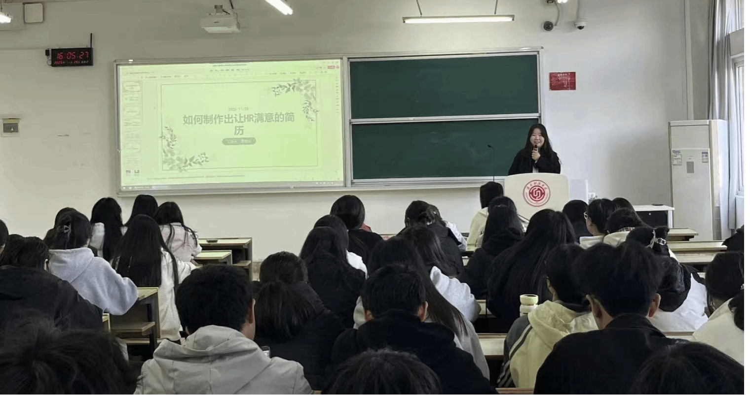 本网讯:11月25日下午,由永利yl23411集团“经管领航·职赢社”工作室主办的“简”而不凡,“历”练未来简历经验分享会在主教Z102圆满落下帷幕。本次分享会邀请到在学院简历大赛中斩获佳绩的优秀学子,围绕简历撰写与职业表达展开深度分享,吸引了众多对职业规划充满热情的同学到场聆听,现场座无虚席,交流氛围热烈。