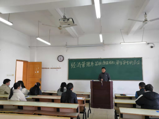 1月20日上午,经济管理系在主教Z104教室召开了寒假留校(暂缓离校)学生安全动员会。经济管理系副主任梁文学、辅导员龙珊、谢晖慧、王博文、邹雄刚、研究生助管程婧出席会议,寒假留校(暂缓离校)学生参加了会议,会议由梁文学主持。
