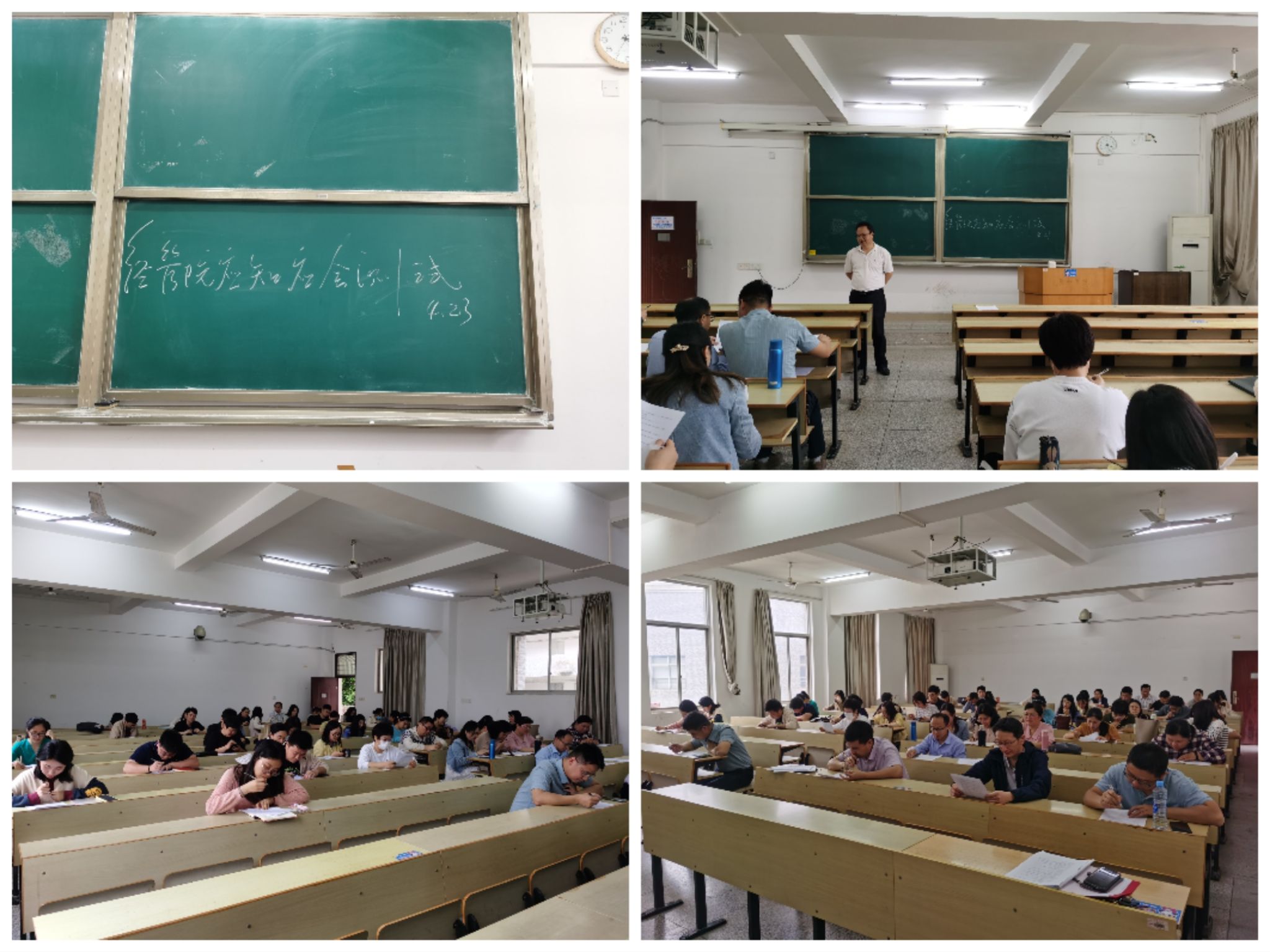 本网讯:为强化学院教师对本科教学工作合格评估知识的了解,推进本科合格评估评建工作的开展,4月23日下午我院在新民楼306教室组织开展本科教学工作合格评估应知应会知识测试。学院全体教师参加。