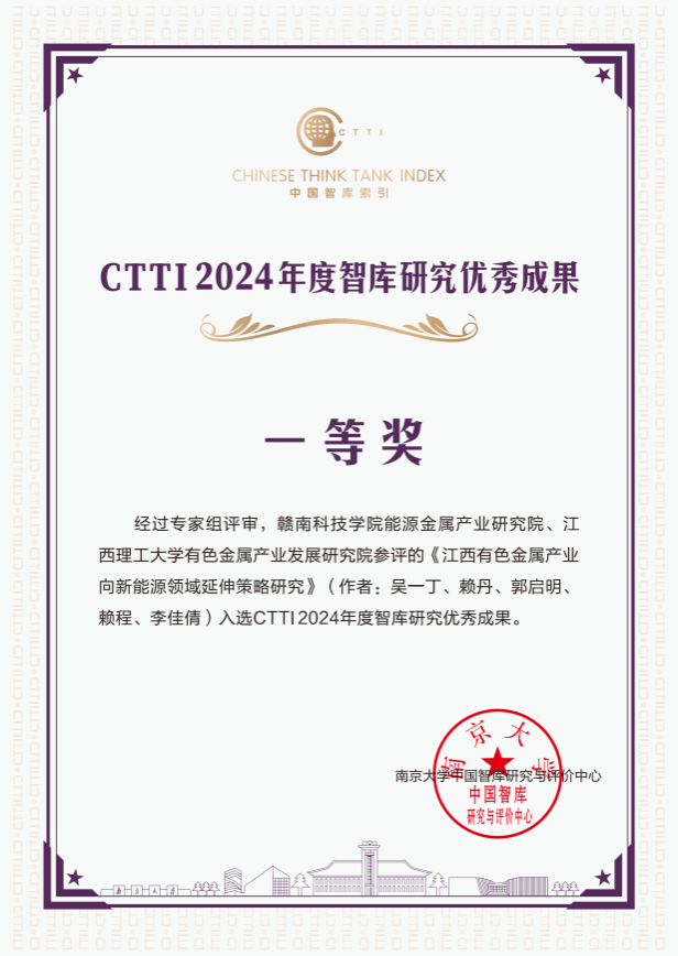 本次论坛发布了CTTI 2024年度智库建设最佳案例和智库研究优秀成果。以我校能源金属产业研究院为主参评的两项智库研究成果均荣获CTTI智库优秀成果一等奖,我校是江西省唯一同时获得2项优秀成果一等奖的单位。