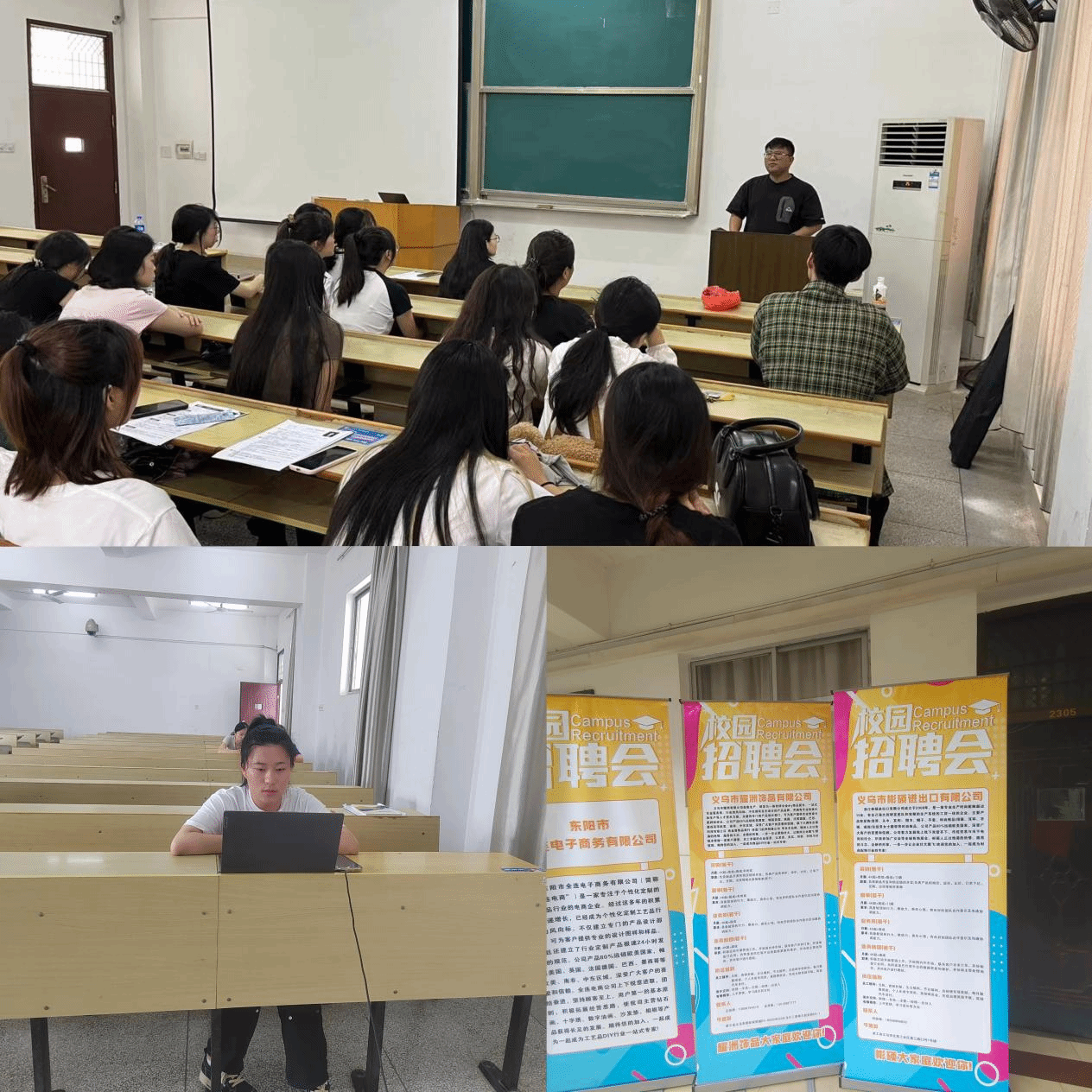本网讯:6月22日下午,我院在新民楼2307教室举办电子商务专业专场招聘宣讲会。浙江义乌云盒子有限公司人力资源经理周涛、何凯,学院辅导员刘显成及40余名同学参加此次活动。