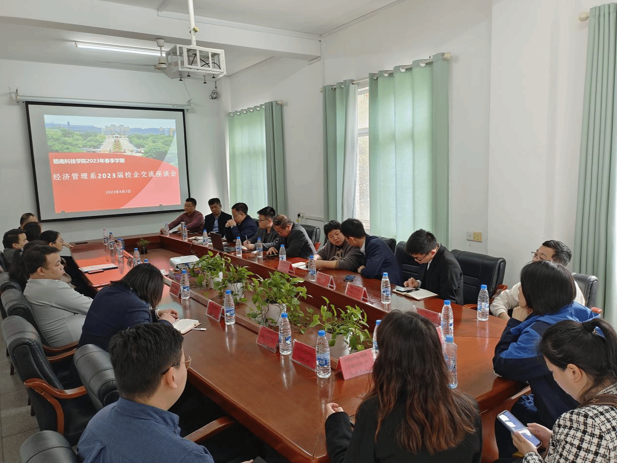 会议邀请了浙江获者电子商务有限公司、义乌市扬天会计服务有限公司、赣州金宏软件科技有限公司、太平洋房地产经纪有限公司、赣州市嘉虹信息科技有限公司、江西乐宁餐饮管理有限公司、赣州路城电子商务有限公司、华西证券股份有限公司赣州新赣州大道证券营业部、九江银行赣州分行、江西赣州银座村镇银行股份限公司、新华人寿保险股份有限公司赣州中心支公司、海通证券股份有限公司赣州红旗大道证券营业部、国盛证券赣州分公司、华福证券有限责任公司赣州分公司、广发银行赣州分行、光大证券股份有限公司、赣州兴国路证券营业部16家企业负责人进校交流。经济管理系党总支书记卢帆兴、系主任钟滨、系主任助理王波、副主任梁文学及各教研室主任代表、就业辅导员出席会议并讲话,活动由梁文学主持。