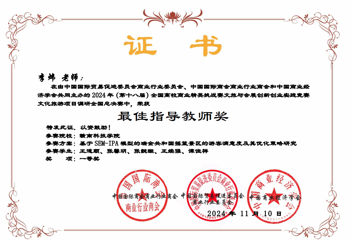 此次获奖,将进一步激励我院师生在文旅与会展创新创业教育领域不断探索创新,为培养更多适应新时代需求的高素质应用型人才而努力奋斗。相信在未来的各类竞赛与实践活动中,我院学子将继续砥砺前行,勇攀高峰,为学校增光添彩,为推动相关行业发展贡献更多的智慧与力量。