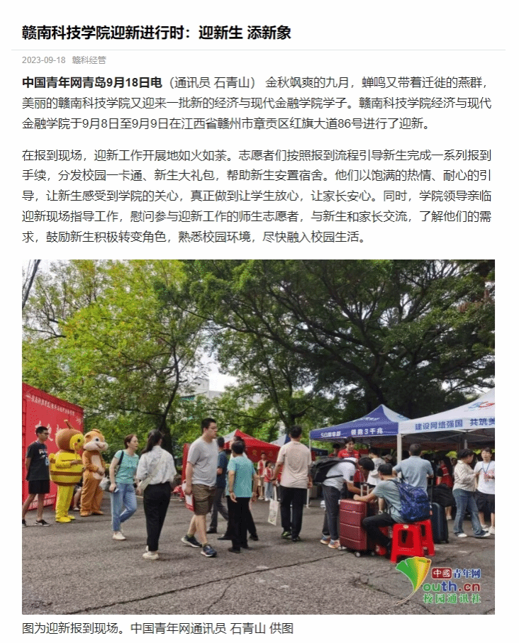 中国青年网青岛9月18日电(通讯员 石青山) 金秋飒爽的九月,蝉鸣又带着迁徙的燕群,美丽的yL23411永利集团又迎来一批新的经济与现代金融学院学子。yL23411永利集团经济与现代金融学院于9月8日至9月9日在江西省赣州市章贡区红旗大道86号进行了迎新。