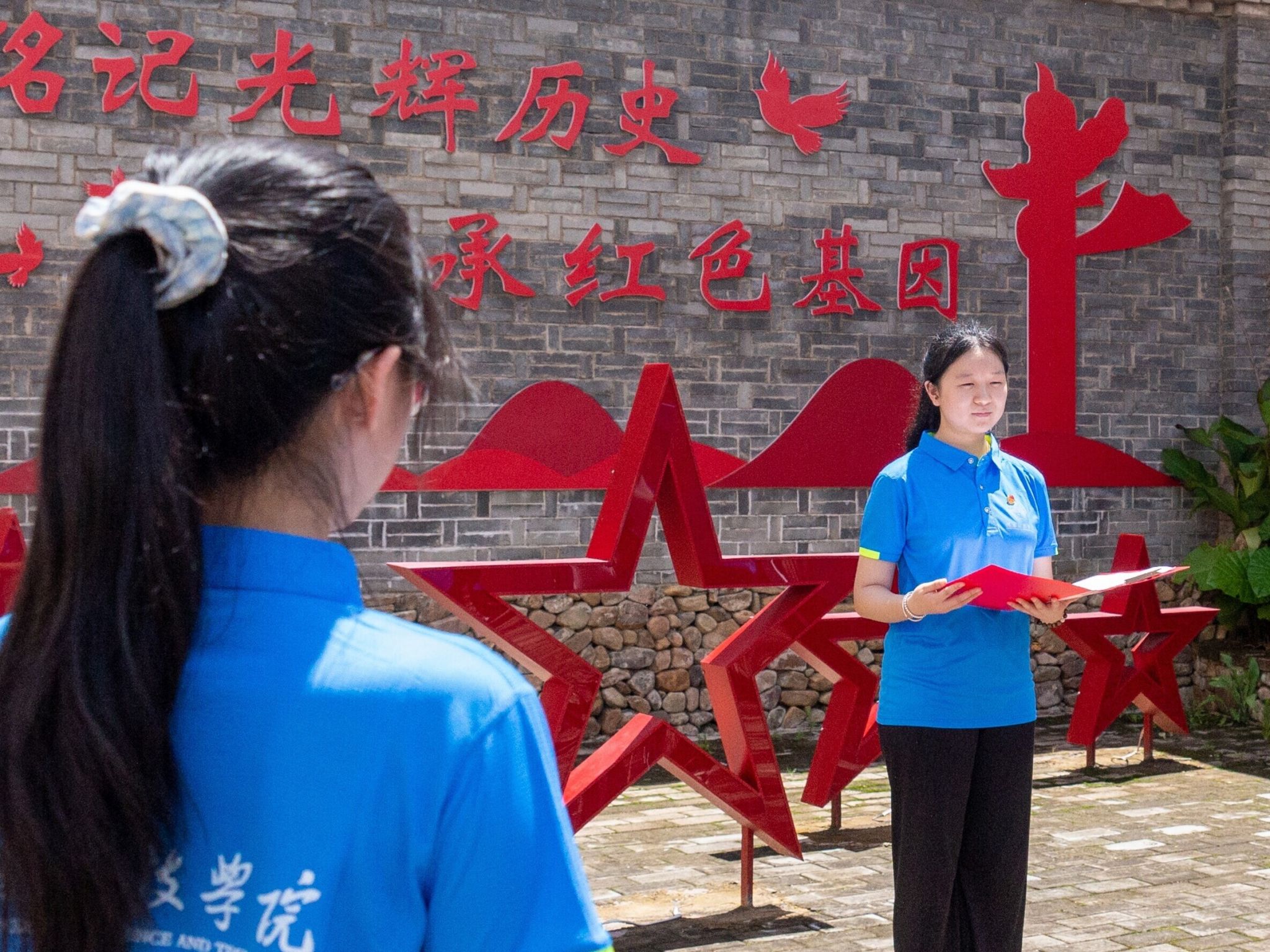 图为蓝鸢实践服务队共同前往龙南县大坝游击队旧址红色名村。中国青年网通讯员 王萍 供图