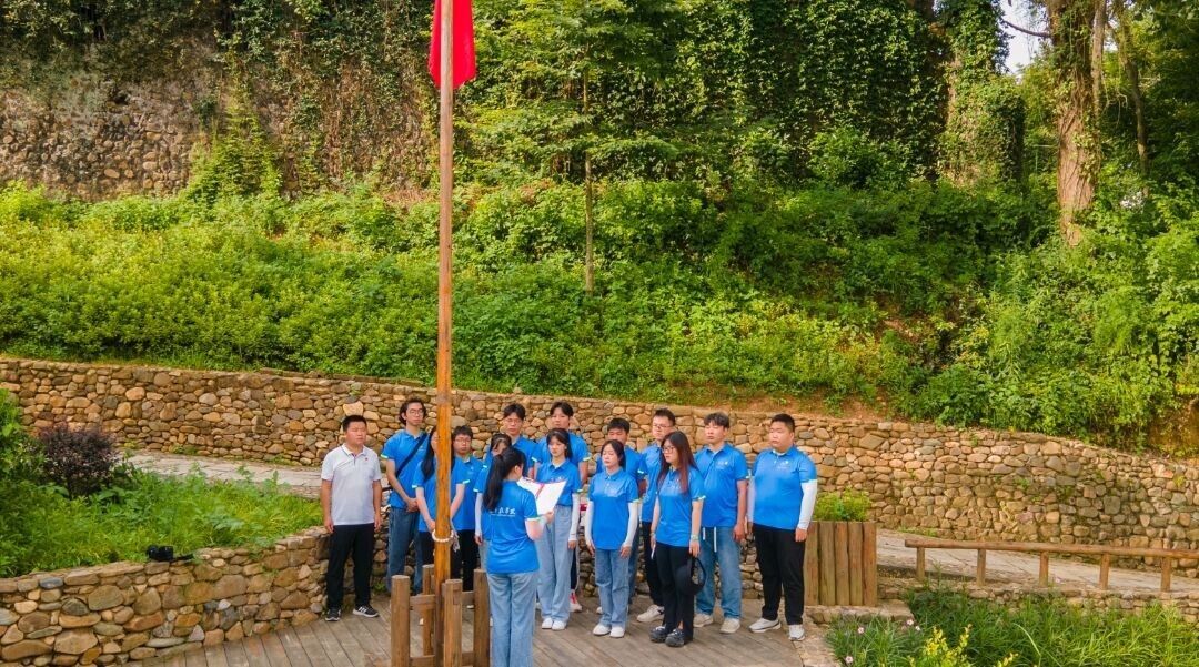 蓝鸢队于7月1日上午,共同来到了江西省赣州市龙南市武当县大坝游击队旧址的国旗下进行升旗仪式。伴随着国旗旗帜逐渐向上飘向顶端,全体成员共同歌唱国歌,拥护党的纲领,遵守党的章程,铭记光辉历史,传承红色基因,庆祝中国共产党建党 102周年,砥砺奋进,不忘初心,牢记使命。