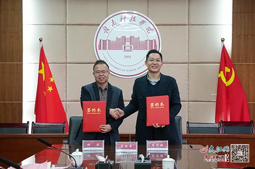 钟滨和熊衍福代表校企双方签约。