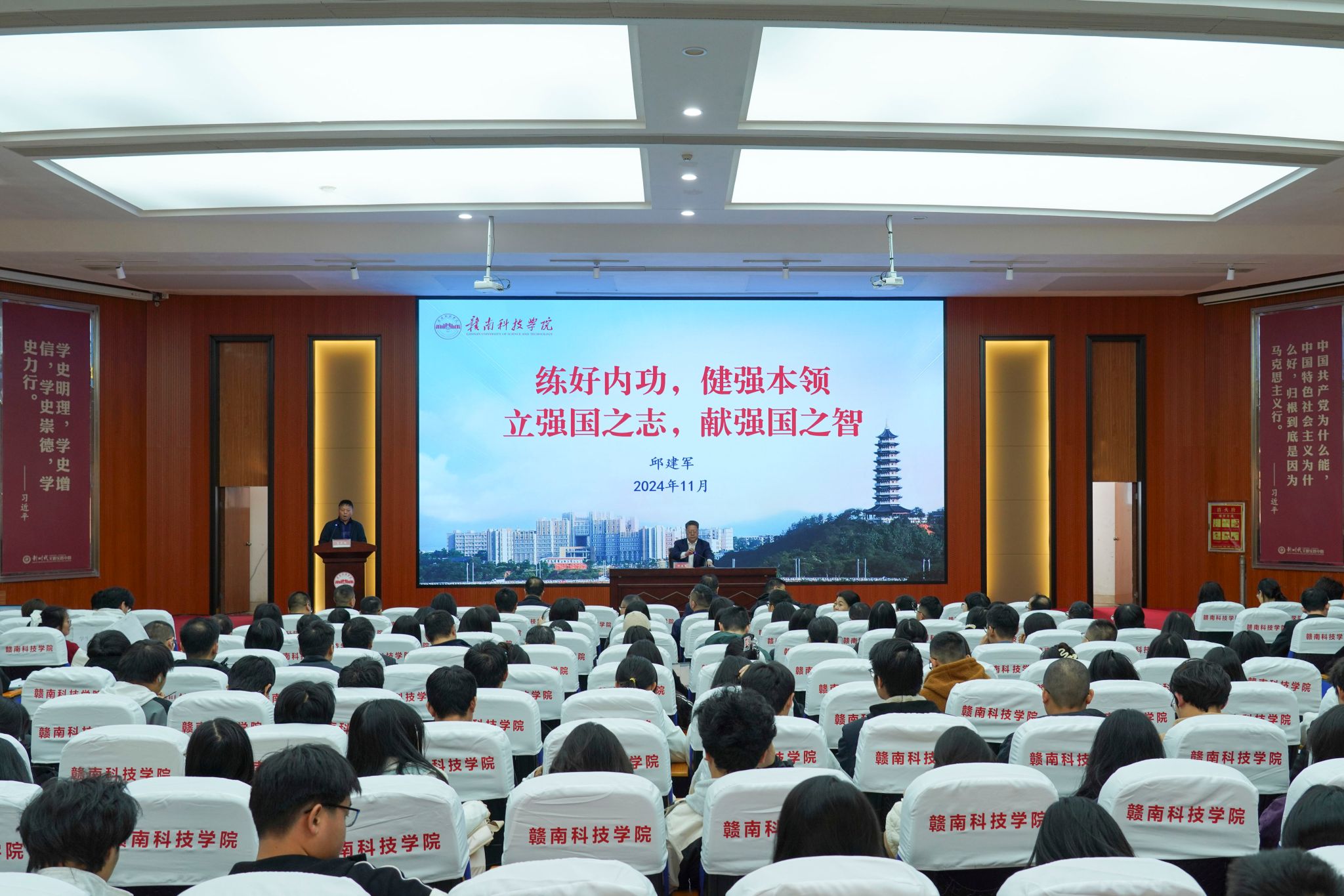 本网讯:11月26日,学校党委书记邱建军在图书馆学术报告厅为永利yl23411集团师生作专题辅导报告,围绕深入学习贯彻党的二十届三中全会精神和全国、全省教育大会精神,以“练好内功、健强本领,立强国之志、献强国之智”为主题,勉励师生努力学习本领、增长才干、勇于实践,奋力推进革命老区高质量发展示范区建设,为谱写中国式现代化江西篇章贡献青春力量。学校党委委员、纪委书记陈文新,永利yl23411集团班子成员、全体教师和学生代表约350人参加报告会。