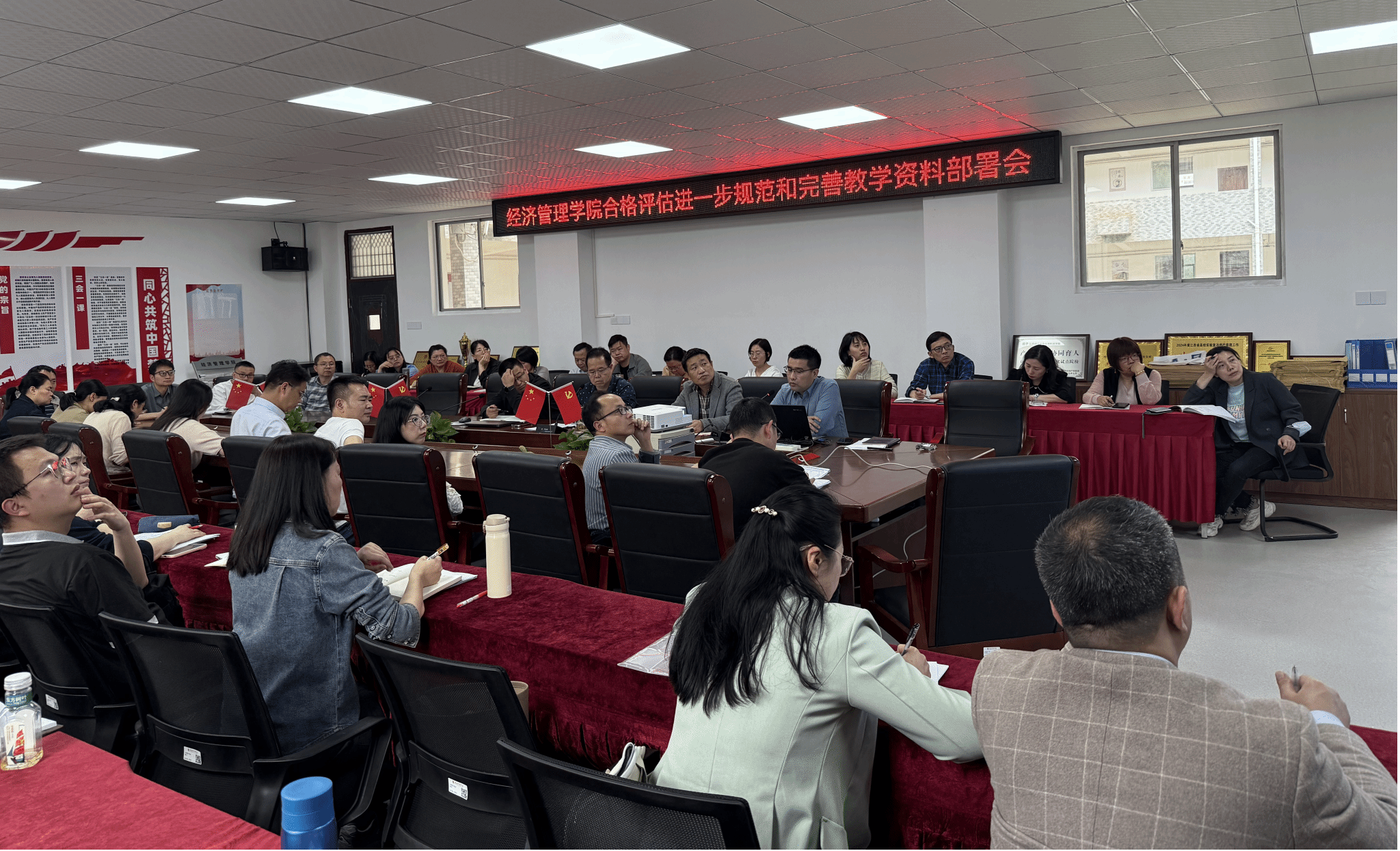 会上,王波结合我院的实际情况,对学院各教师的考核材料、教案、日历、三纲、毕业论文、实习、实验、课程设计、教师听课、教研室活动、教学设备等教学资料的完善与存档进行了部署,强调了重点需要注意的事项,并提出了时间要求和下一步工作安排。
